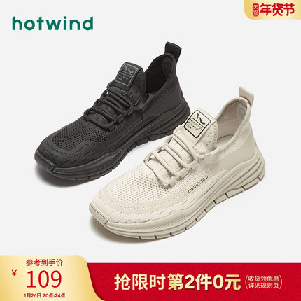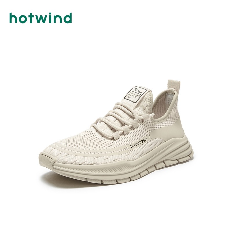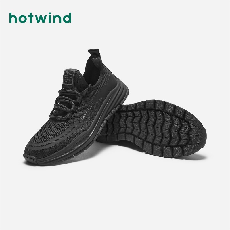 热风秋季新款男士时尚休闲鞋系带透气网面鞋运动户外慢跑鞋