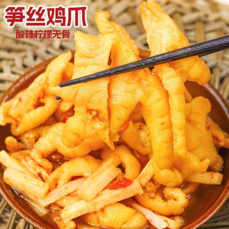 网红柠檬酸辣鸡爪带笋丝无骨脱骨超入味500g罐装宿舍零食即食解馋