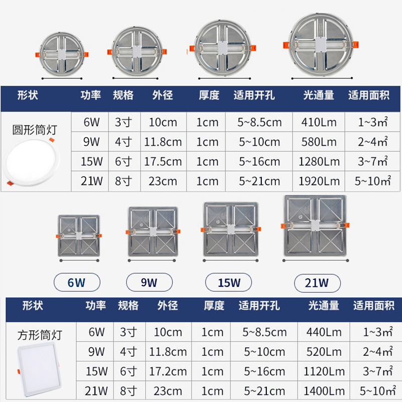 led筒灯嵌入式超薄天花射灯孔灯家用方圆形格栅客厅玄关吊顶洞灯