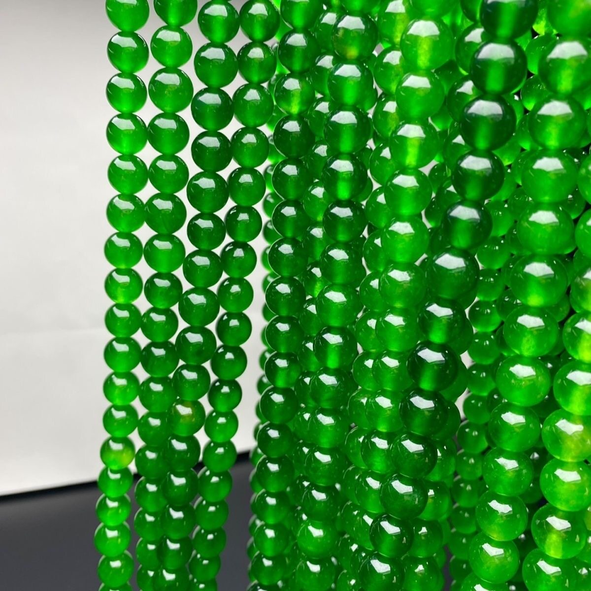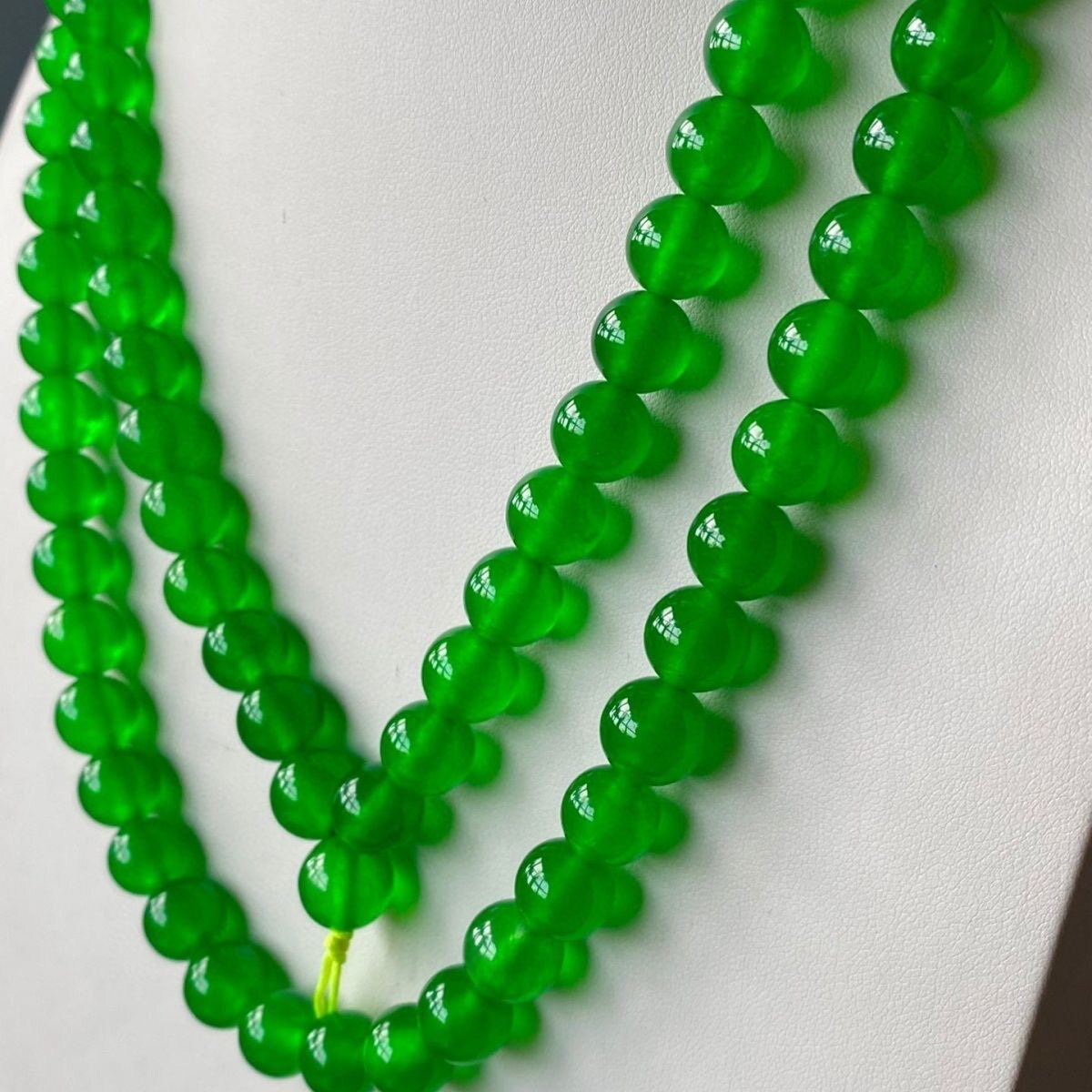 天然清代老料翡翠玉108颗帝王绿项链缅甸辣绿阳绿玻璃种项链收藏