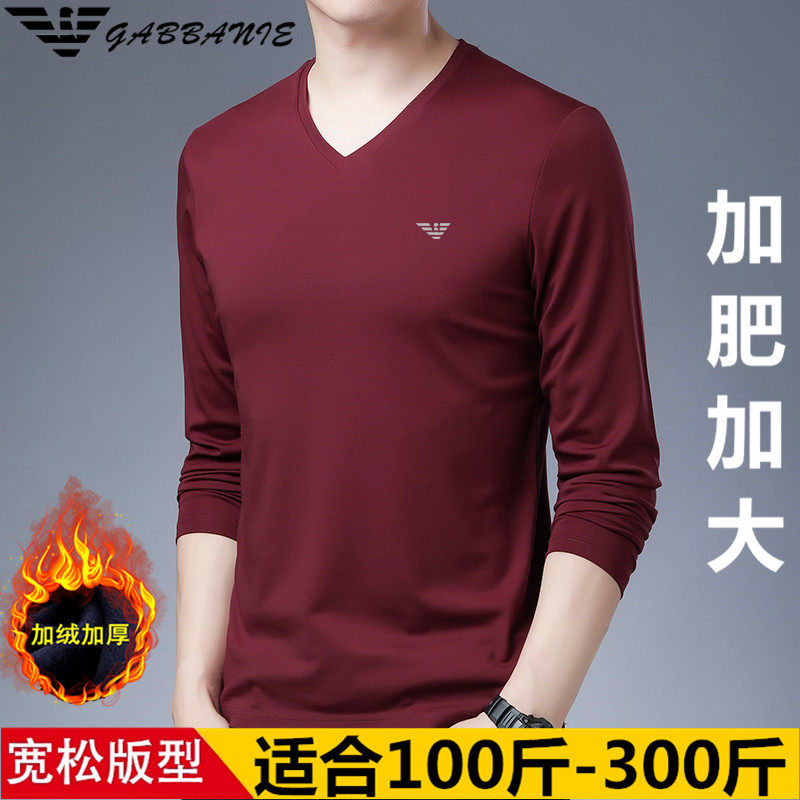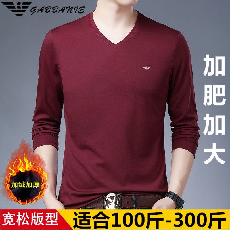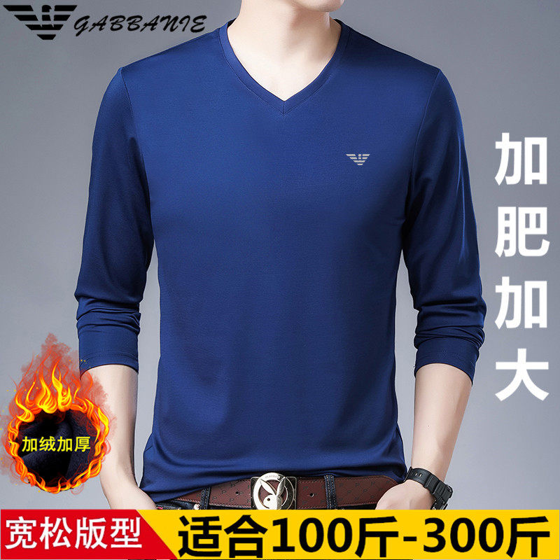 GABBANIE冬季大码长袖T恤男加绒加厚宽松加肥加大胖子肥佬男装