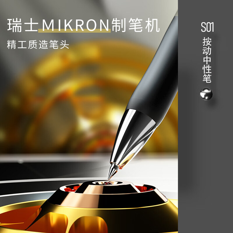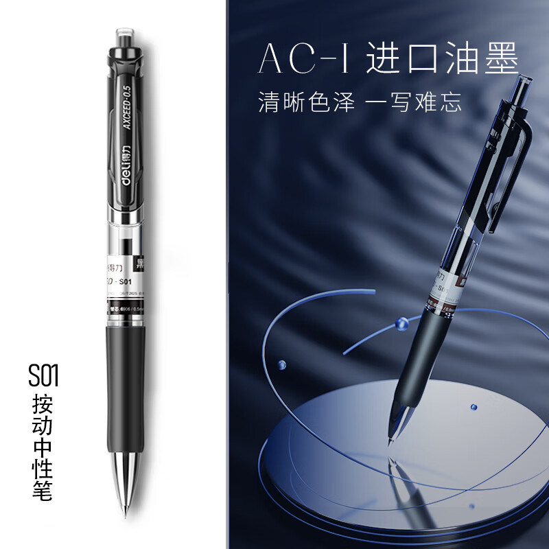得力按动笔中性笔水笔学生用考试按压式子弹头碳素黑色水性签字笔芯0.5mm圆珠笔蓝黑红笔教师办公文具用品