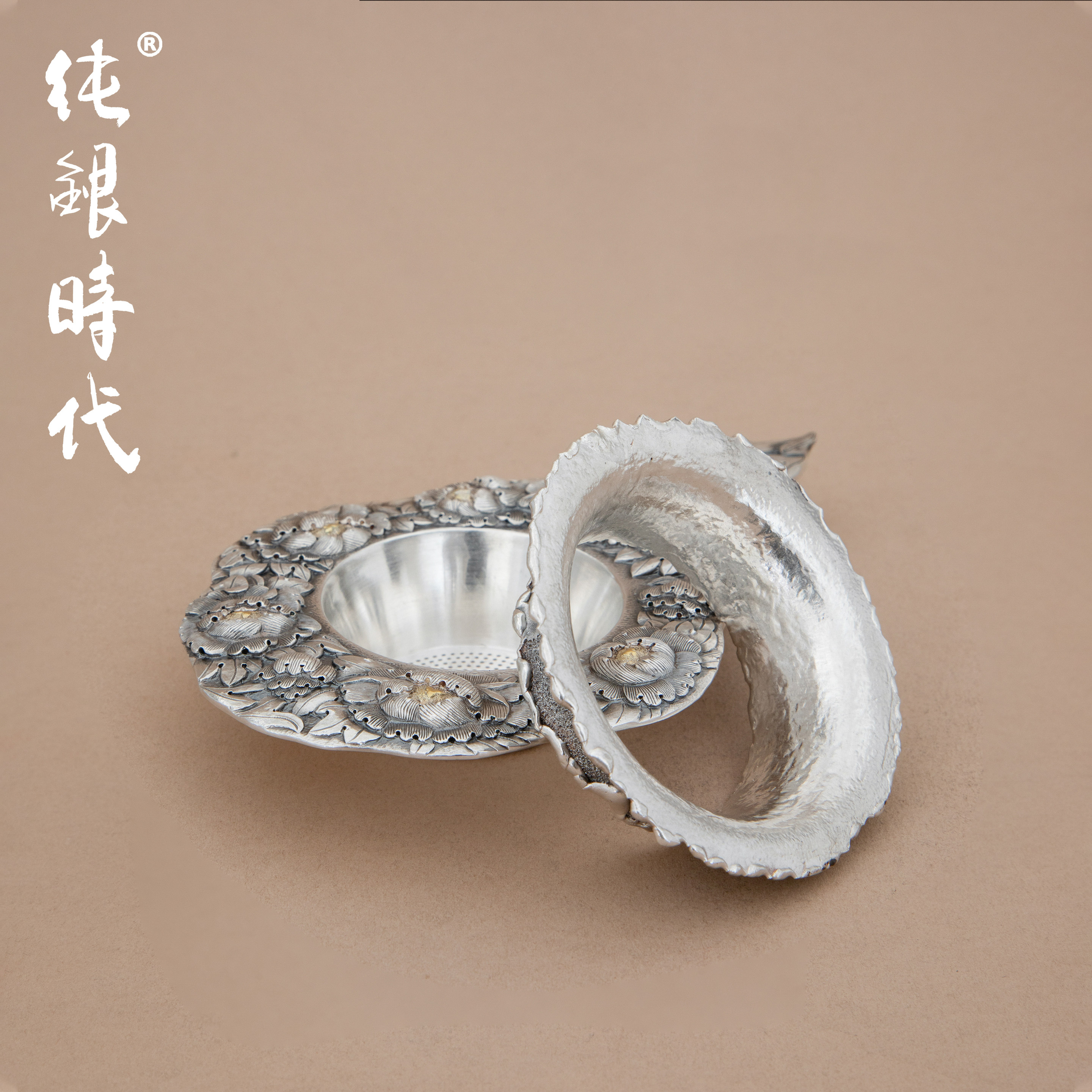 纯银时代手工錾刻纯银茶滤茶漏