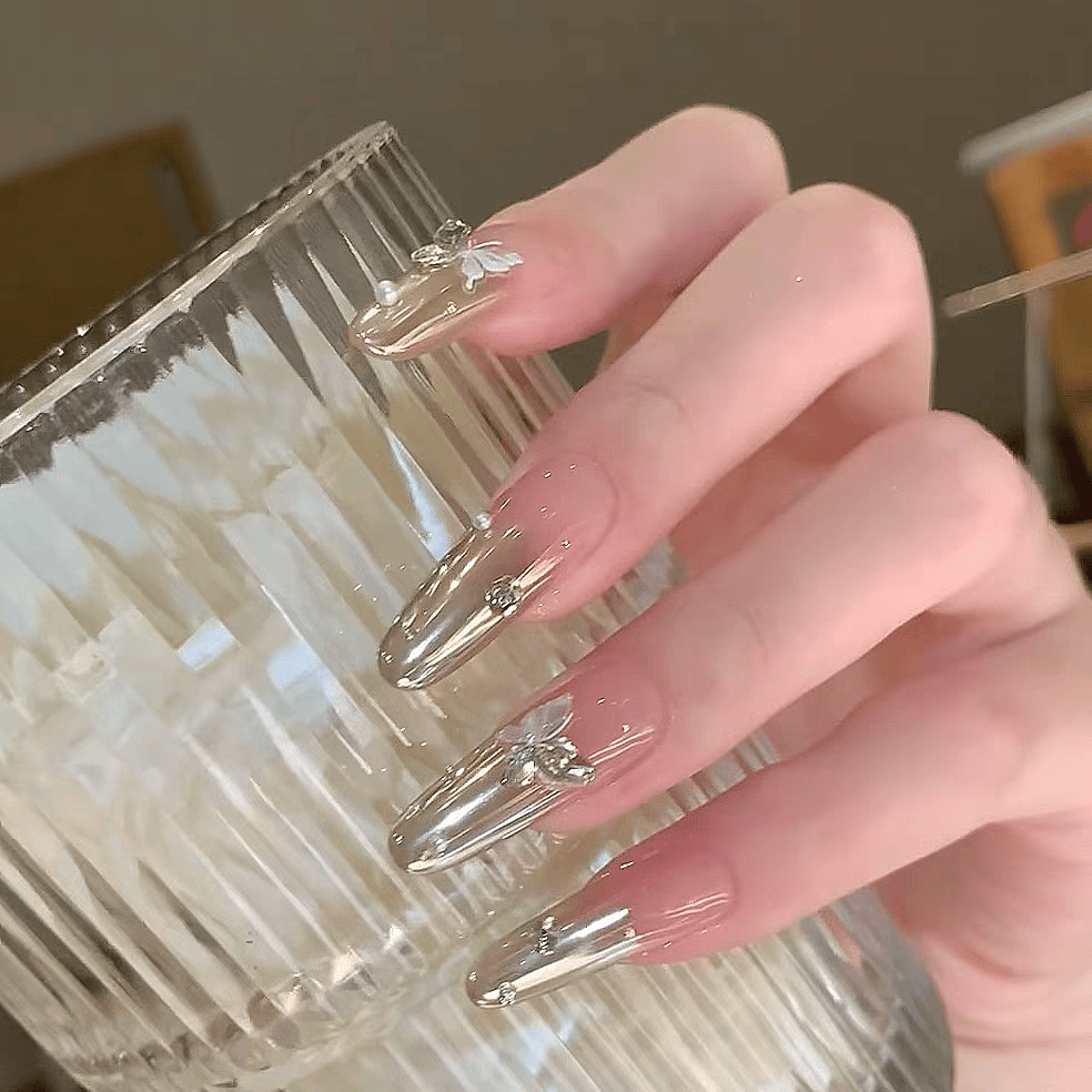 穿戴甲蝴蝶月光银粉渐变绝美适合夏天手作高级感显白甲片