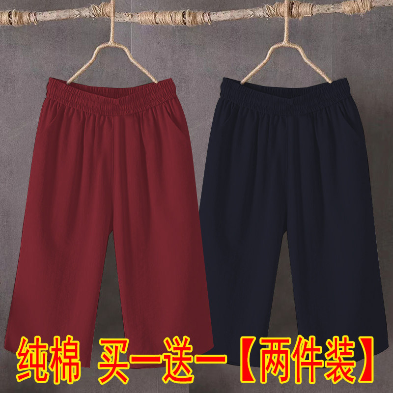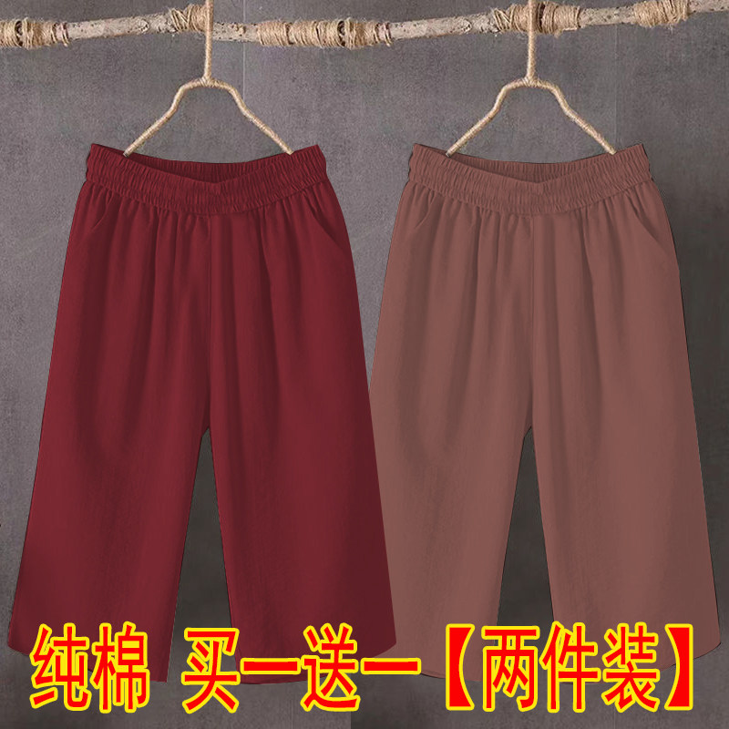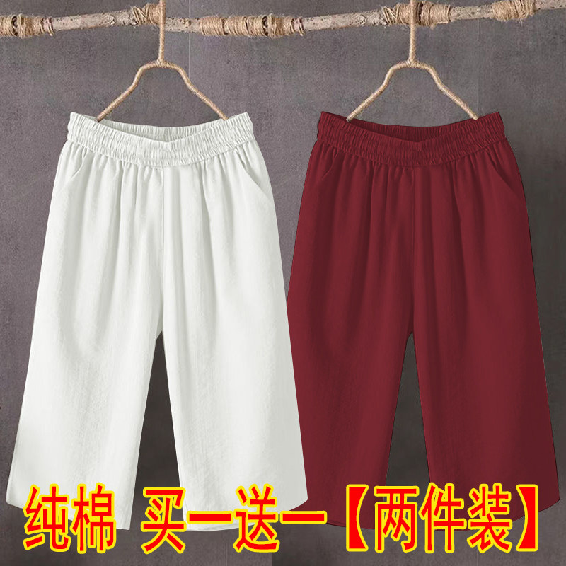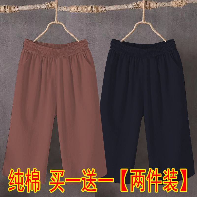 纯棉阔腿裤女夏季七分裤女休闲裤