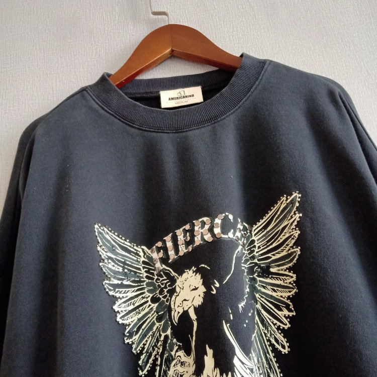 外贸新品春秋女装 欧美休闲印花钉珠毛圈棉圆领宽松 女生潮流卫衣