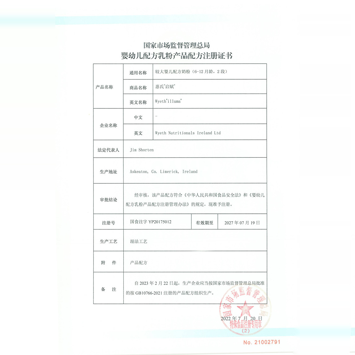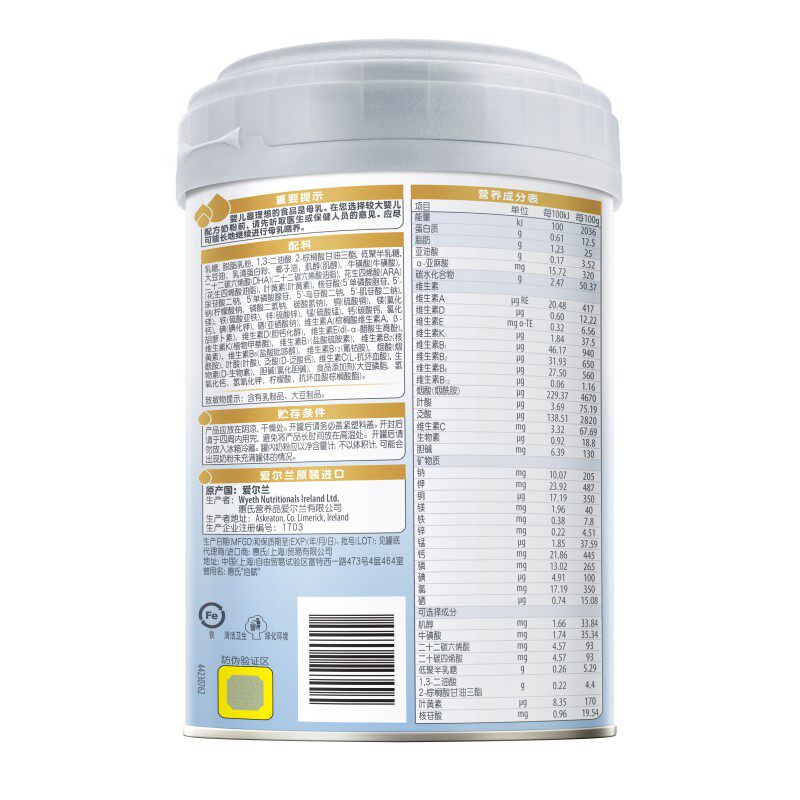 【官方正品】惠氏启赋铂金2段818g*1罐婴幼儿宝宝2段牛奶粉