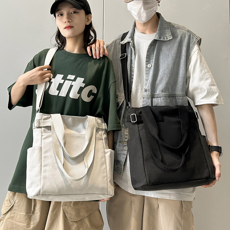 日系复古帆布包男生学生上课手提包休闲大容量斜挎包女通勤单肩包