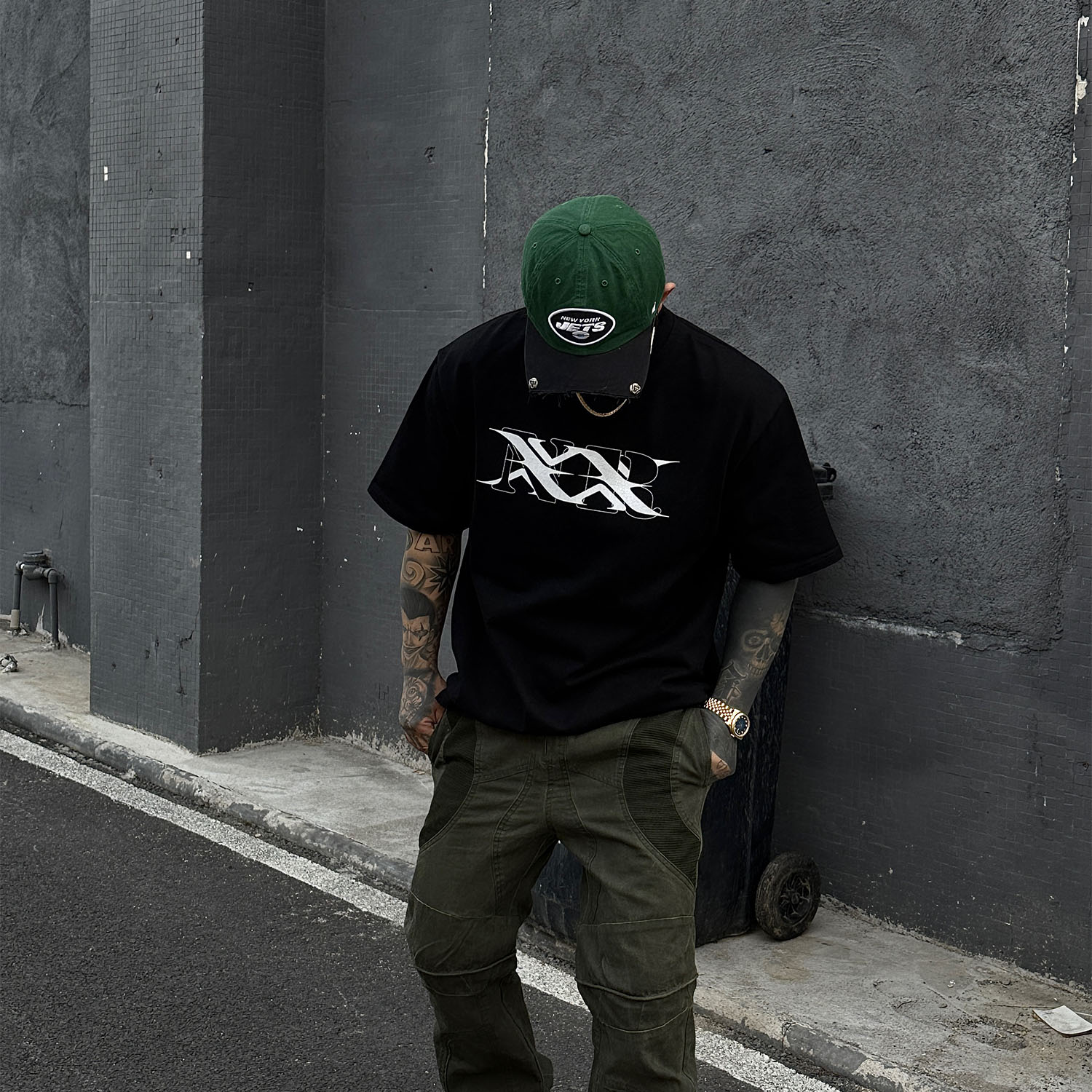 白鹤大大重磅360g字母印花黑色短袖男女t恤时尚男女纯棉t情侣半袖