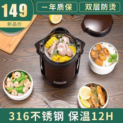 琪虎保温饭盒三层24小时上班族便携12可加热多层大容量真空桶带饭