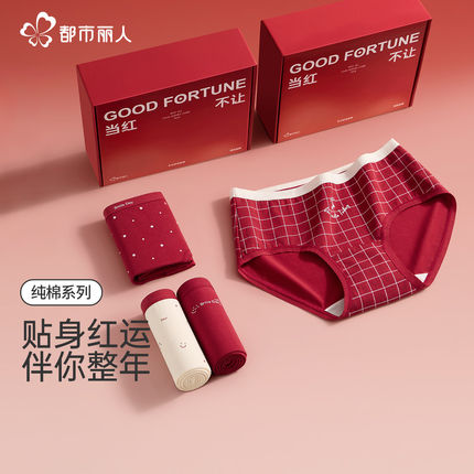 都市丽人红色内裤少女士纯棉抗菌裆马年结婚本命年三角短裤礼盒装