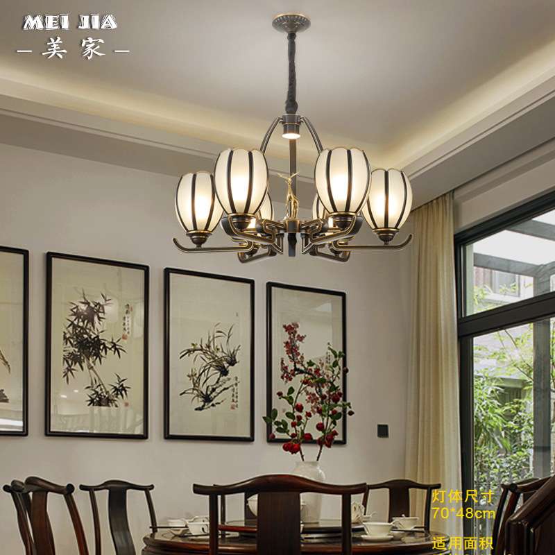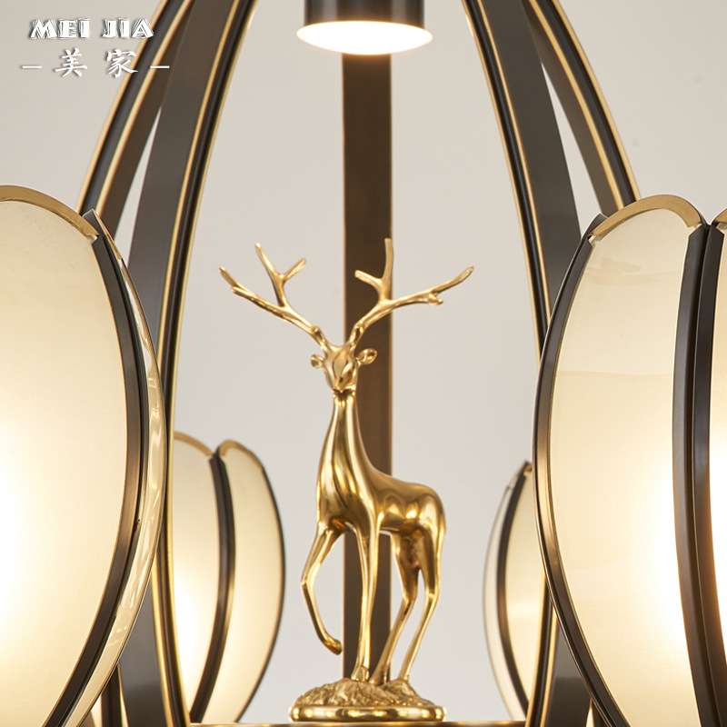 复古新中式客厅餐厅全铜吊灯别墅大气大厅卧室房间吊灯复式楼灯具