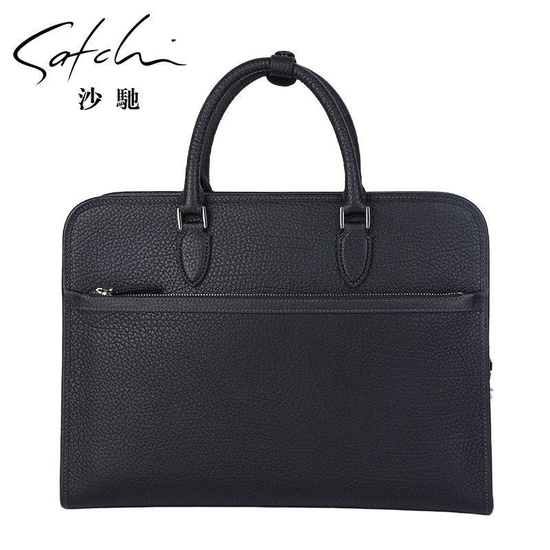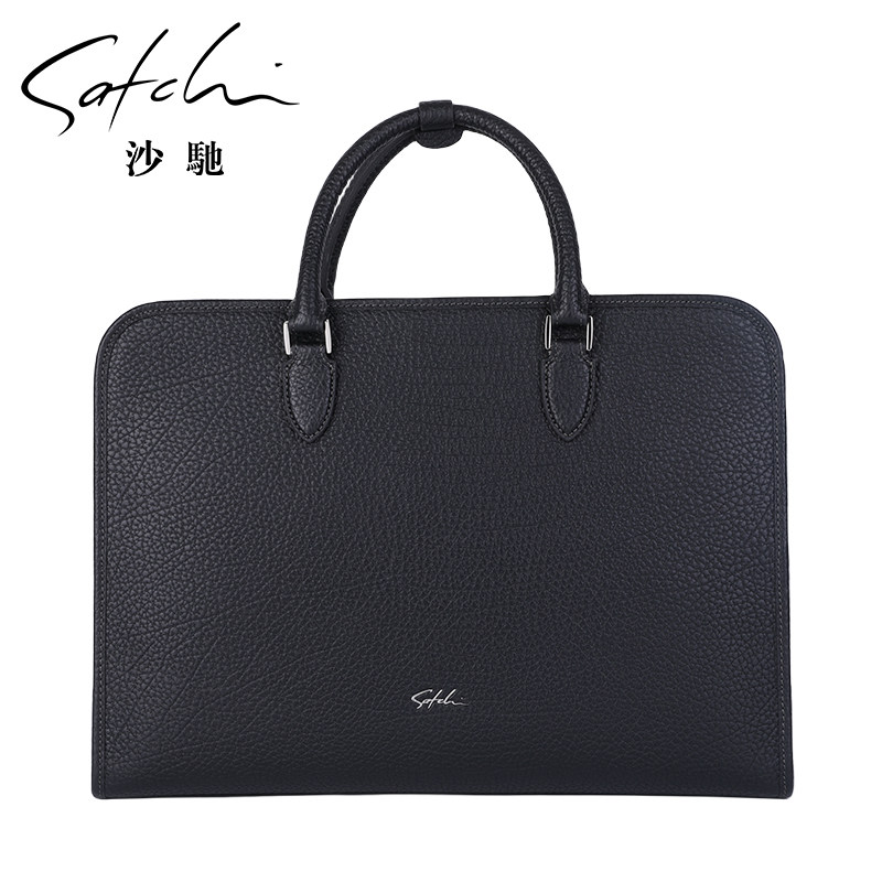 沙驰真皮男包新款密码锁公文包时尚百搭横款商务手提包牛皮商务包