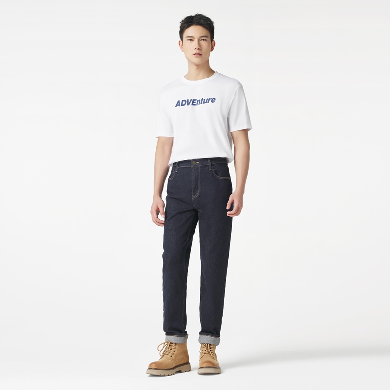 热风牛仔裤男款2025年春季新款美式复古锥型牛仔裤深色修身长裤