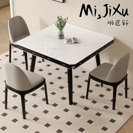明匠轩家居现代简约复古风家用岩板实木折叠餐桌椅方形变圆形饭桌