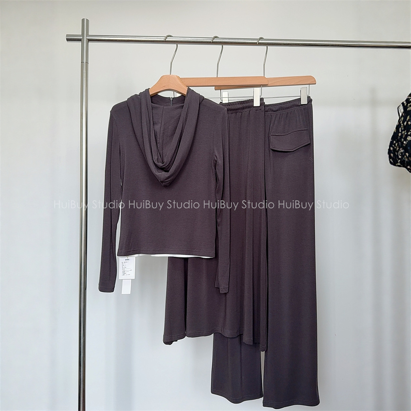 【会buy实拍】氧气套装~秋新韩系显瘦简约宽松连帽卫衣半身裙裤子