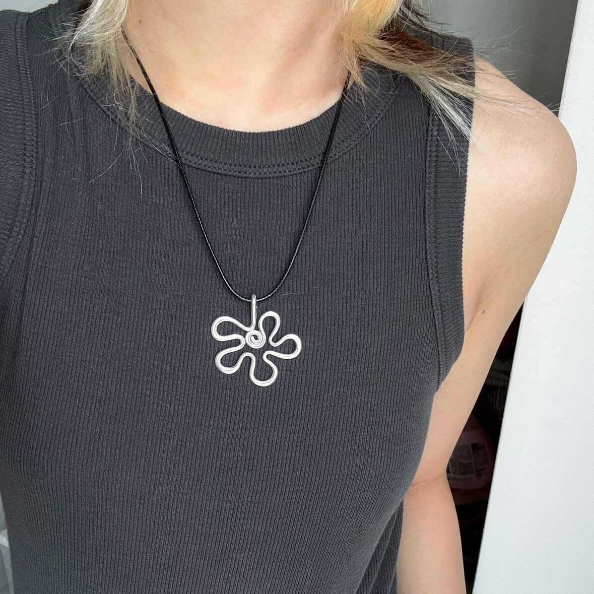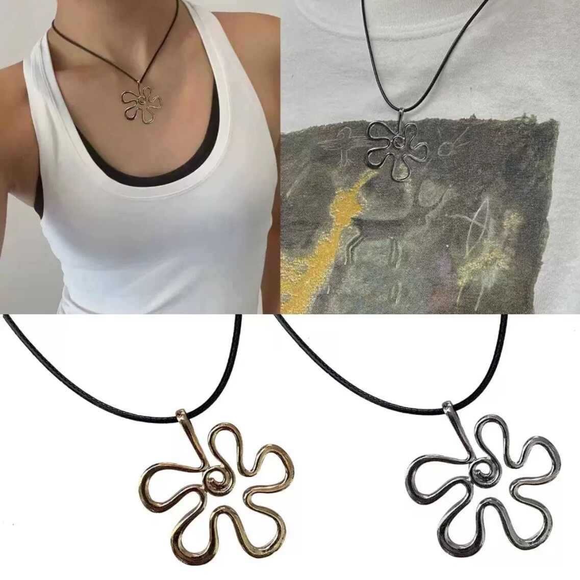 波西米亚皮绳锁骨链欧美新款皮绳项圈花朵吊坠项链百搭简约潮流