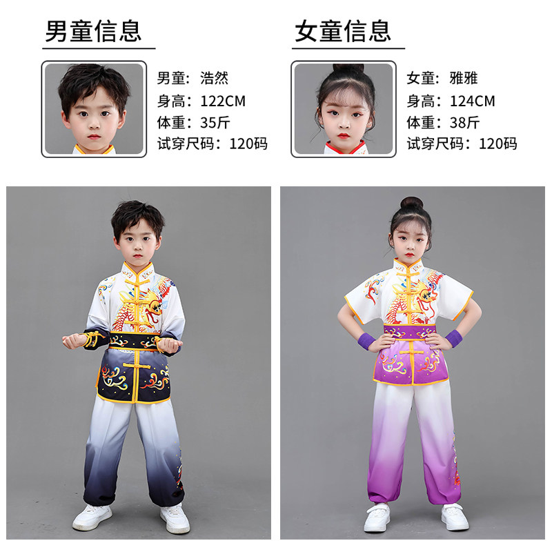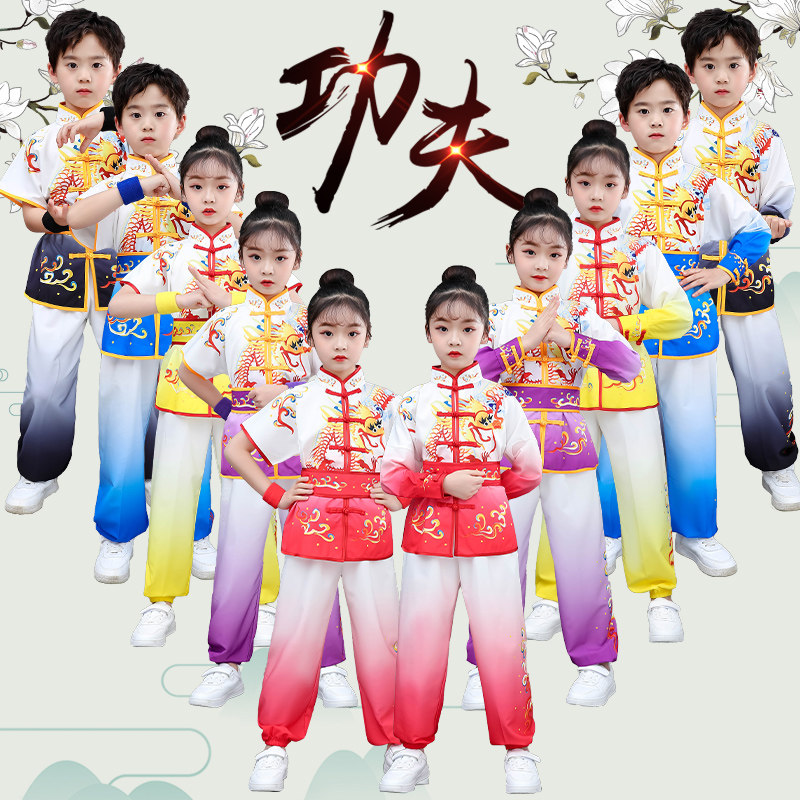 儿童武术服装少儿中国风表演服装男女练功服训练服渐变比赛演出服