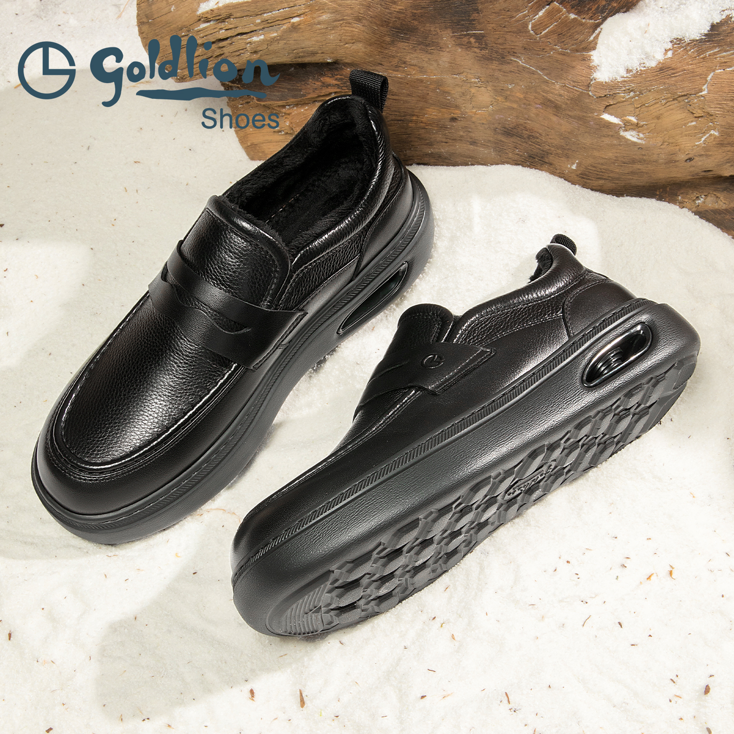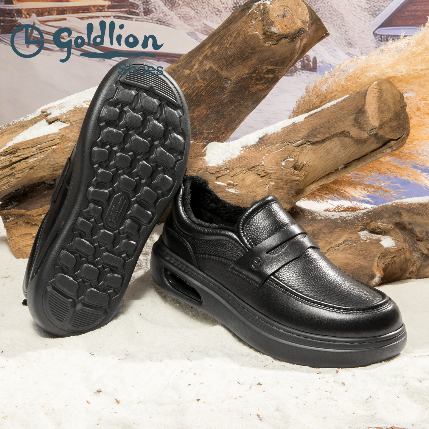 Goldlion/金利来男鞋新款加绒乐福鞋商务休闲鞋一脚蹬皮鞋防滑