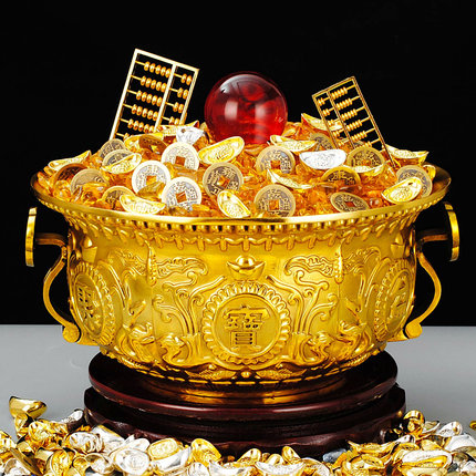铜聚宝盆居家办公室摆件聚财中式