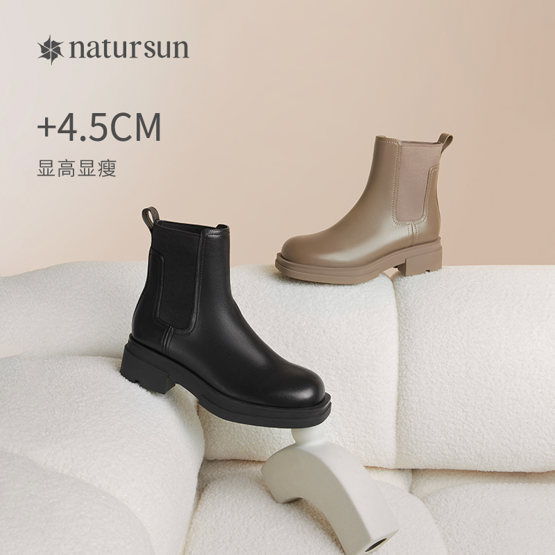 natursun商场同款冬季女切尔西靴光感小烟筒简约百搭靴子中跟短靴