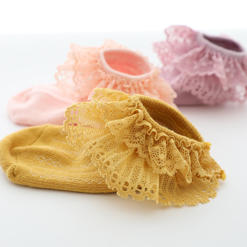 女宝宝袜子春秋季棉袜蕾丝花边甜美公主潮袜婴儿童短袜0-1-3-5岁