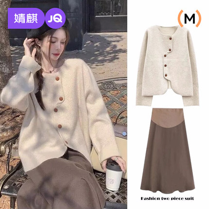 婧麒孕妇装春秋季2025新款连衣裙毛衣时尚洋气时髦大码半身裙套装