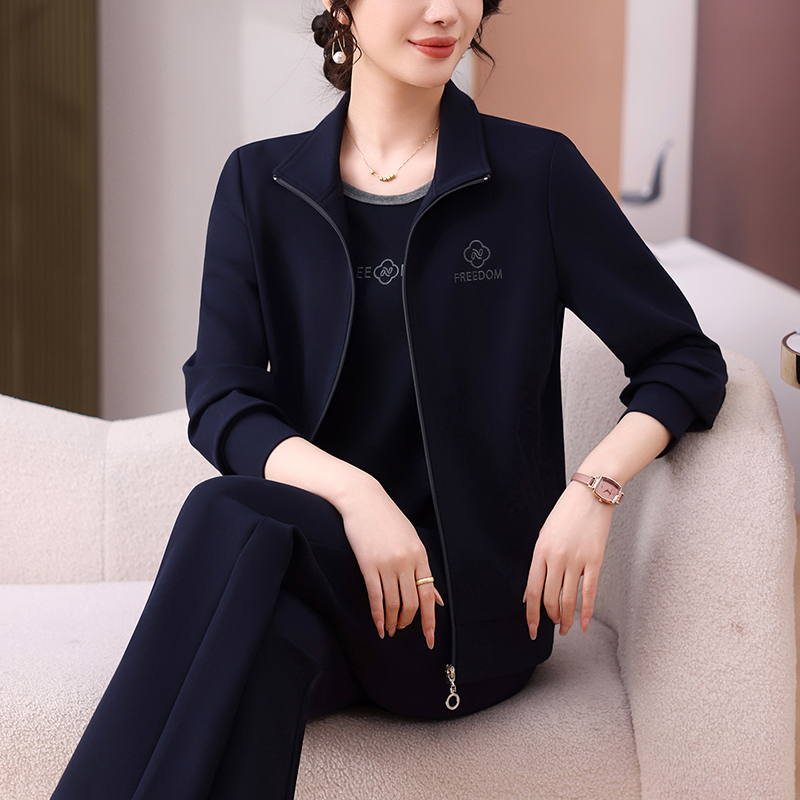 50多岁妈妈秋装外套中老年人运动套装女春秋季中年妇女上衣三件套
