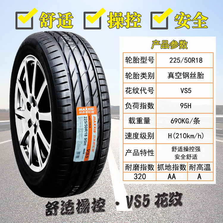 玛吉斯轮胎225/50R18 VS5原装小鹏P7大众途岳捷趵 防爆胎22550r18
