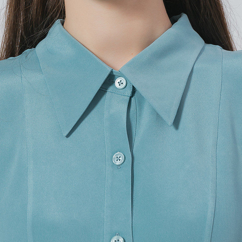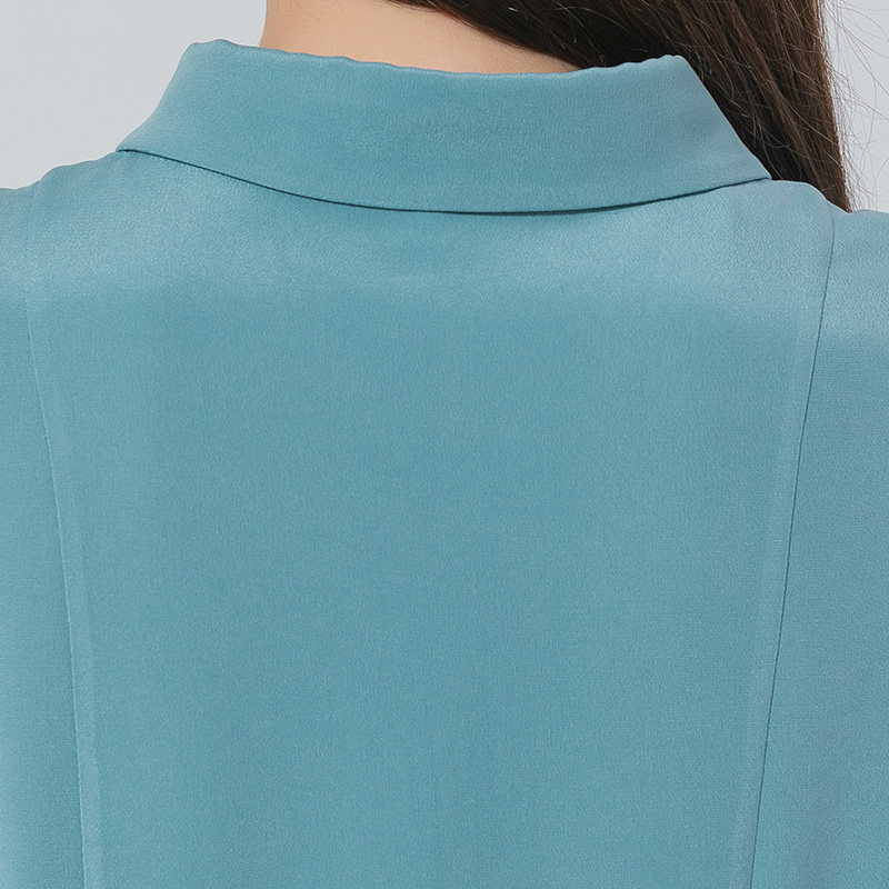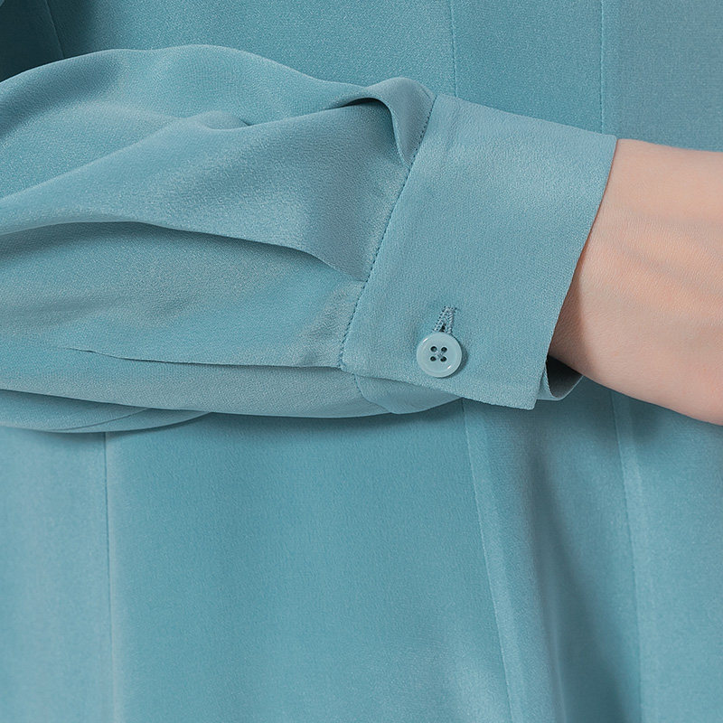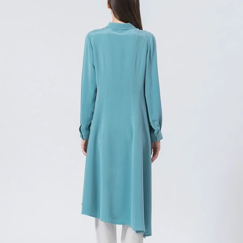 30姆米重磅真丝单排扣前短后长个性时尚个性雾蓝衬衫外套