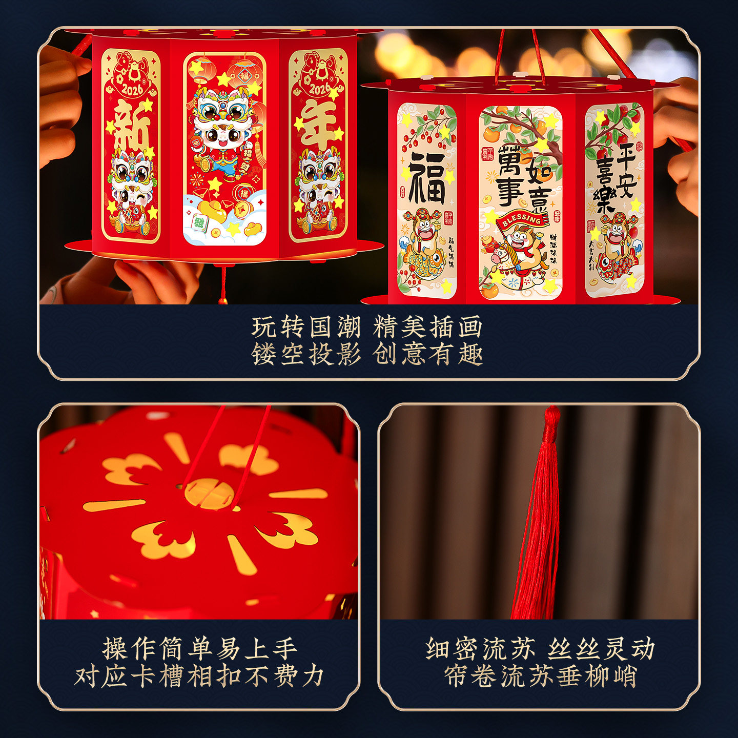 过新年投影灯笼2026新款元宵手提LED走马宫灯儿童手工diy马年花灯