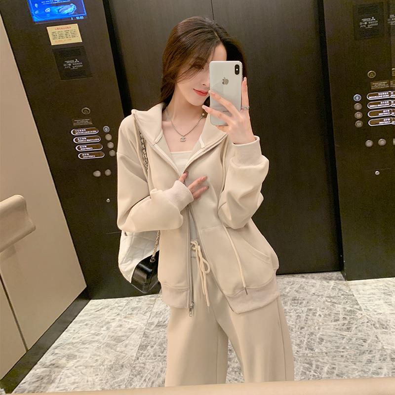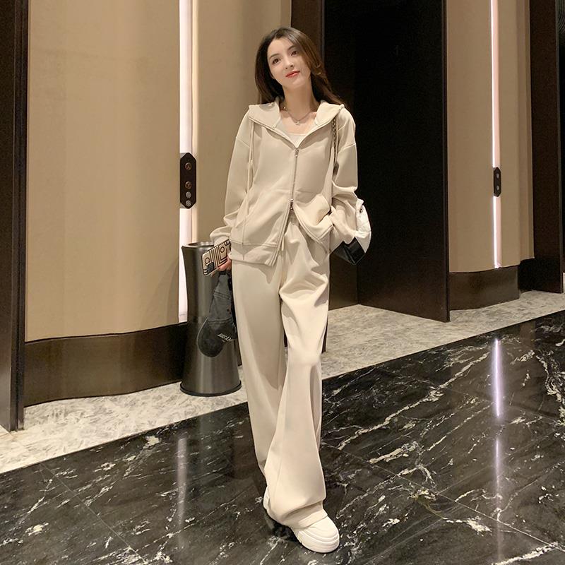 高级感休闲运动套装女秋冬宽松慵懒时尚洋气连帽开衫阔腿裤两件套
