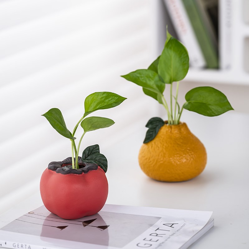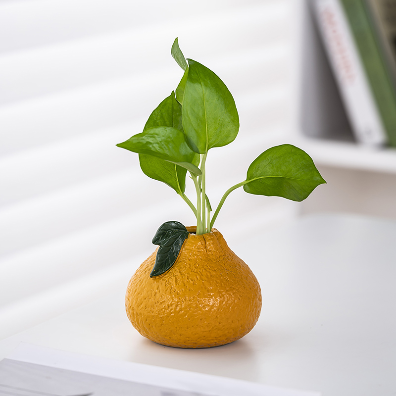 创意橘子花瓶陶瓷水养绿萝水培花盆花器客厅办公桌面装饰礼品摆件