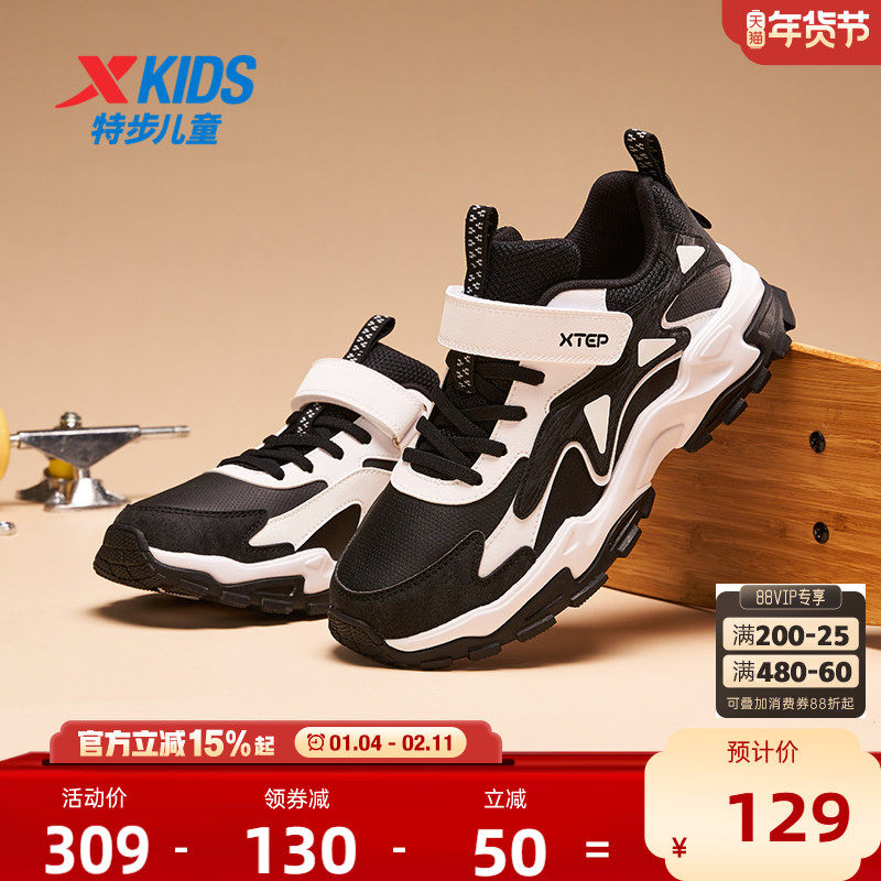 特步童鞋儿童运动跑步鞋秋季新款男童耐磨防滑中大童魔术贴休闲鞋