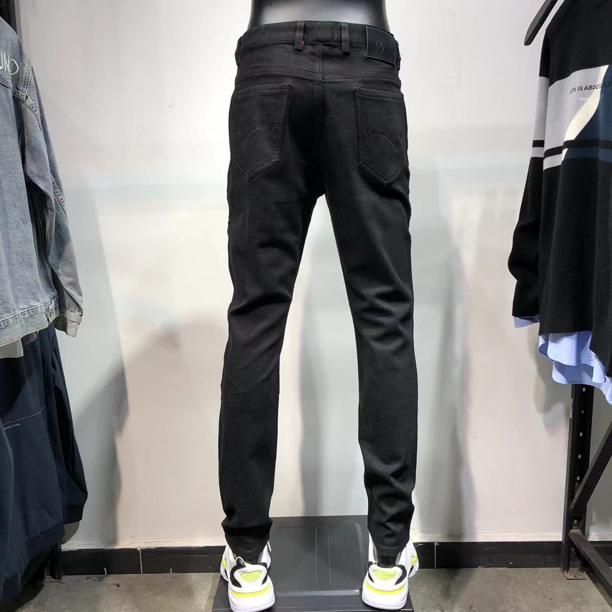 品牌男装撤柜秋冬厚款男士内里薄绒磨毛小脚弹力略修身牛仔裤长裤