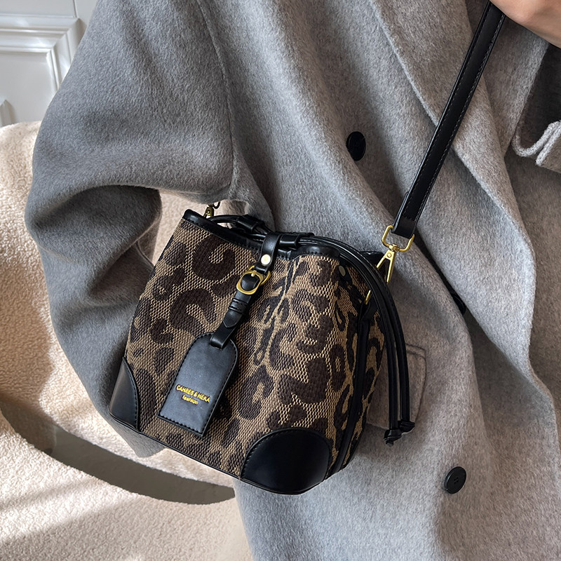 高级感质感小包包女包2025新款豹纹时尚单肩斜挎包小众设计水桶包