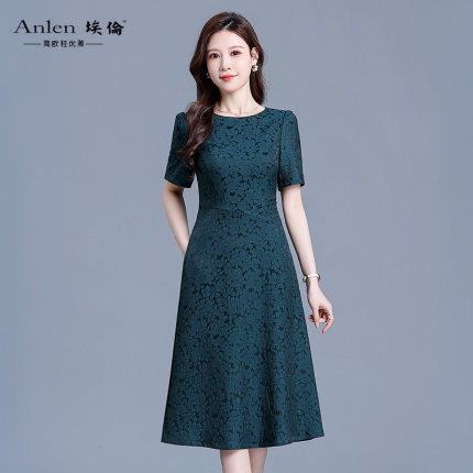 埃伦优雅高端气质连衣裙女2025夏季新款修身显瘦减龄A字洋气长裙