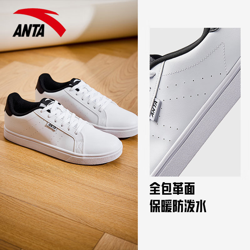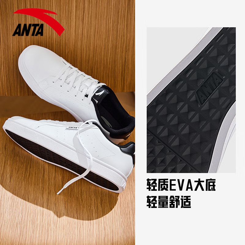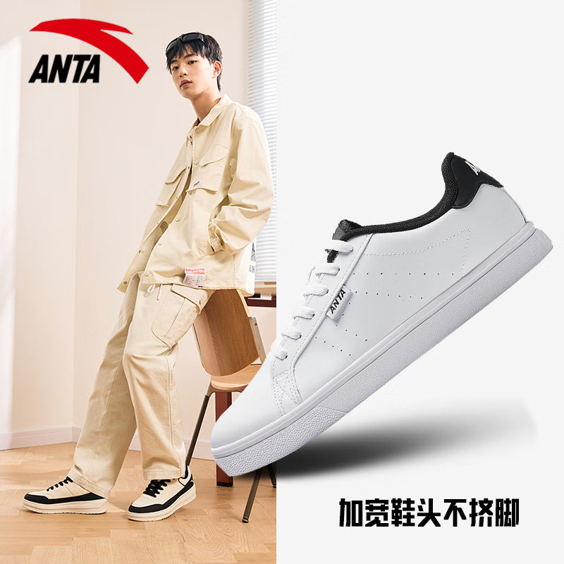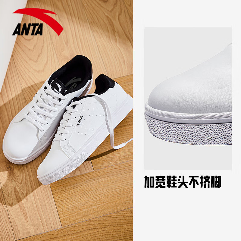 安踏板鞋男鞋春季百搭皮面低帮休闲小白鞋男士防滑耐磨轻便运动鞋