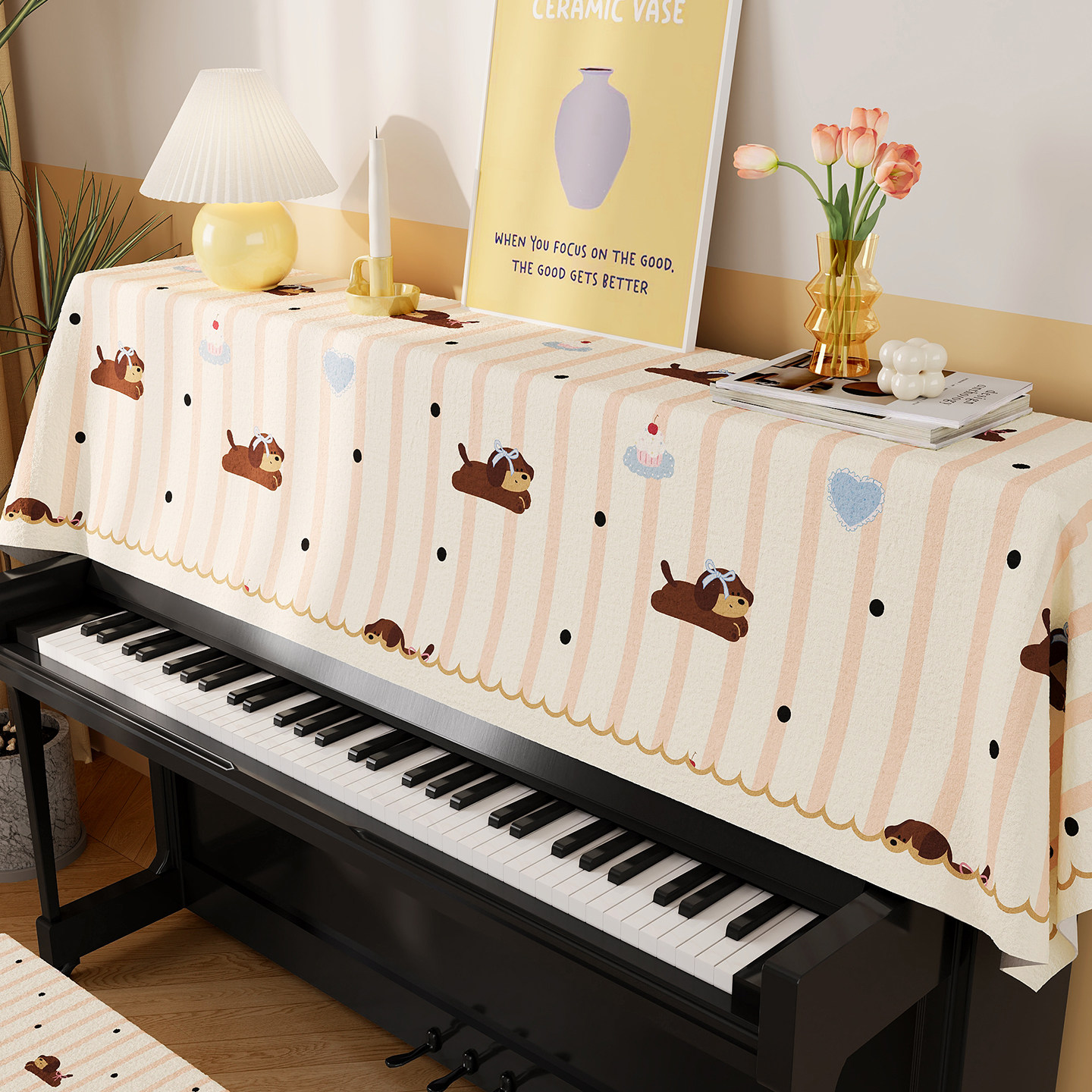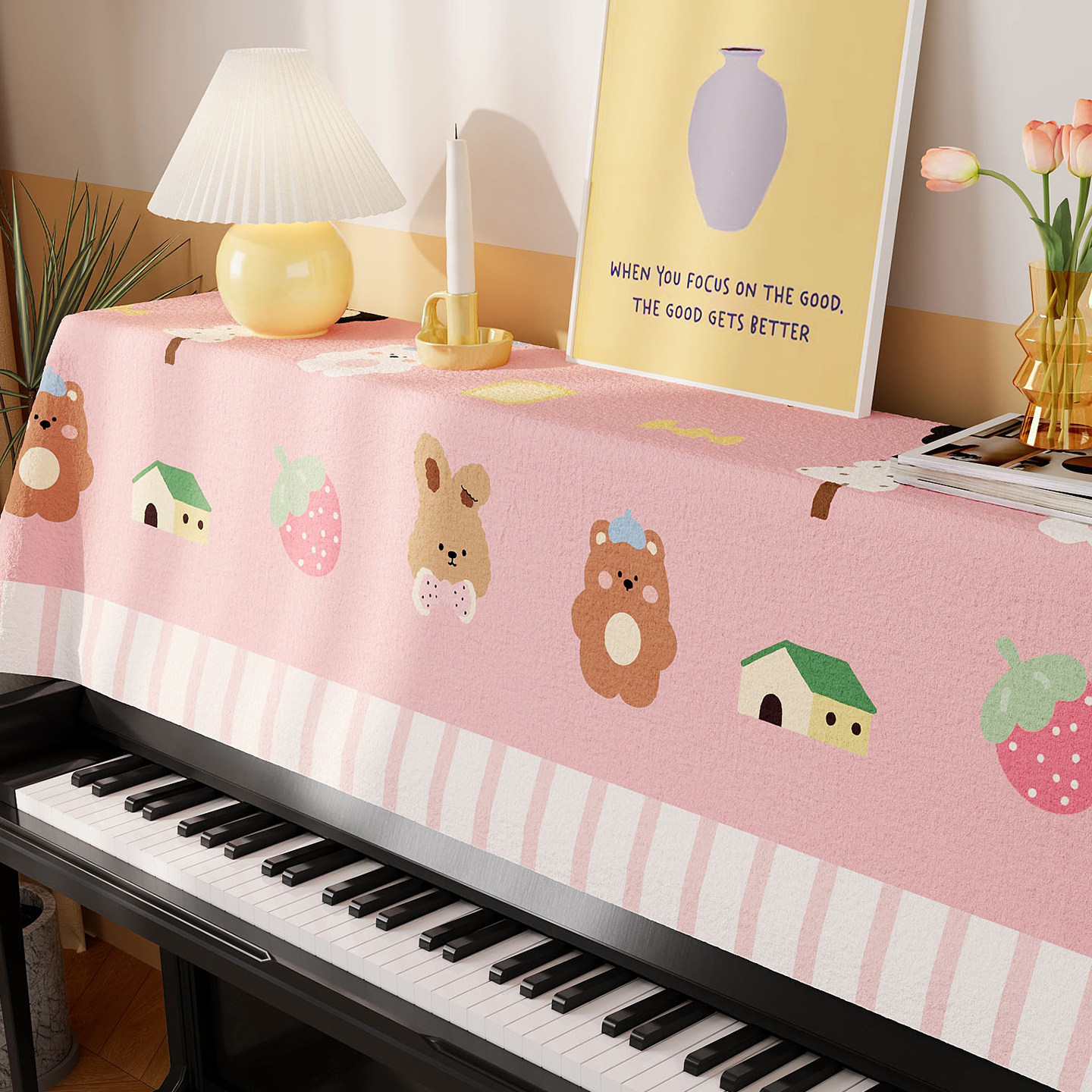 卡通多巴胺钢琴盖布半罩琴顶防尘盖巾家用电子琴键琴凳通用遮灰布