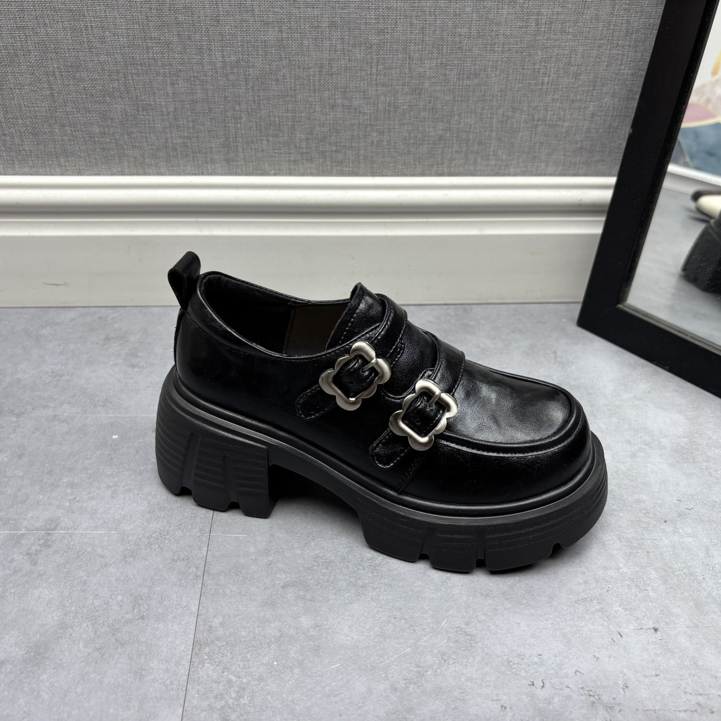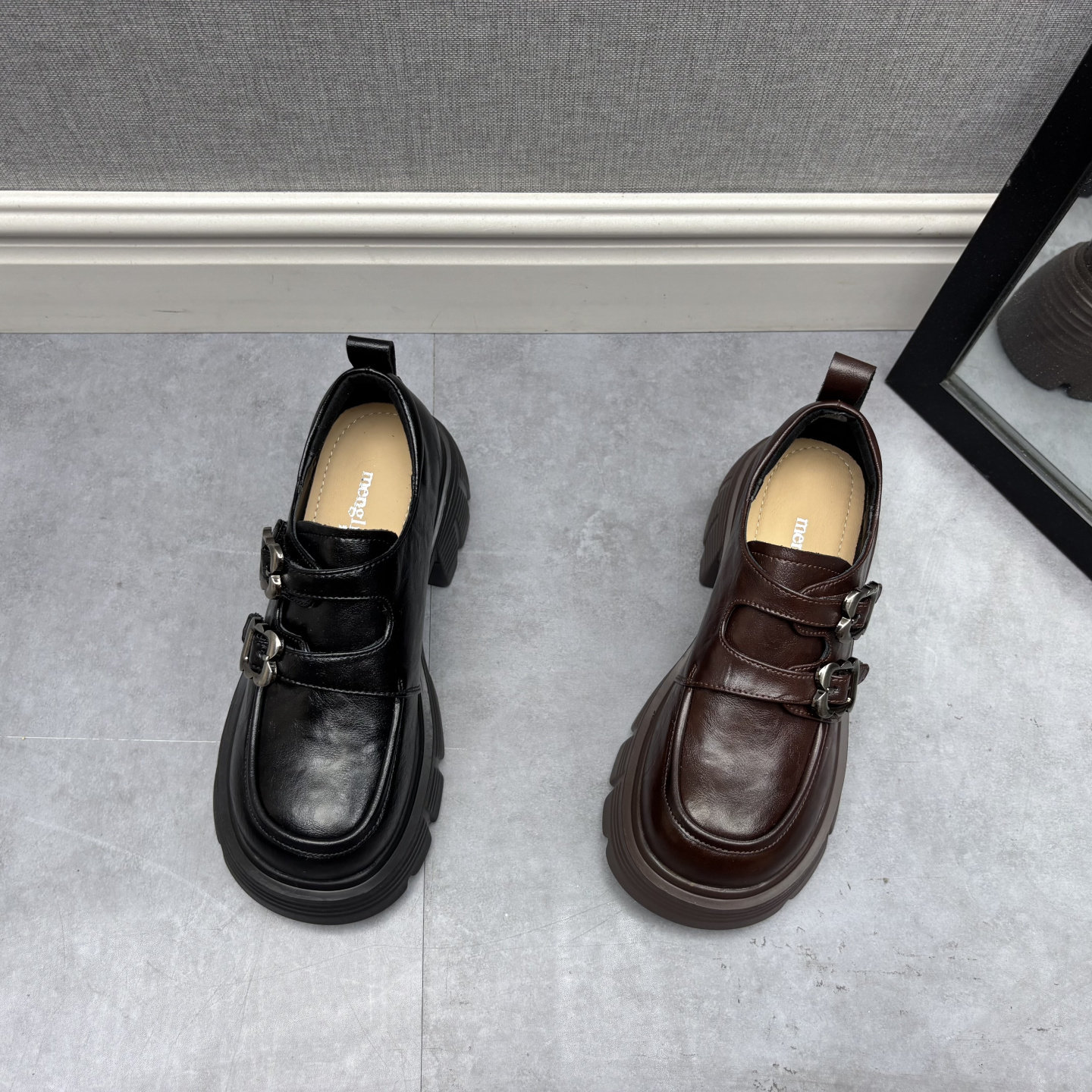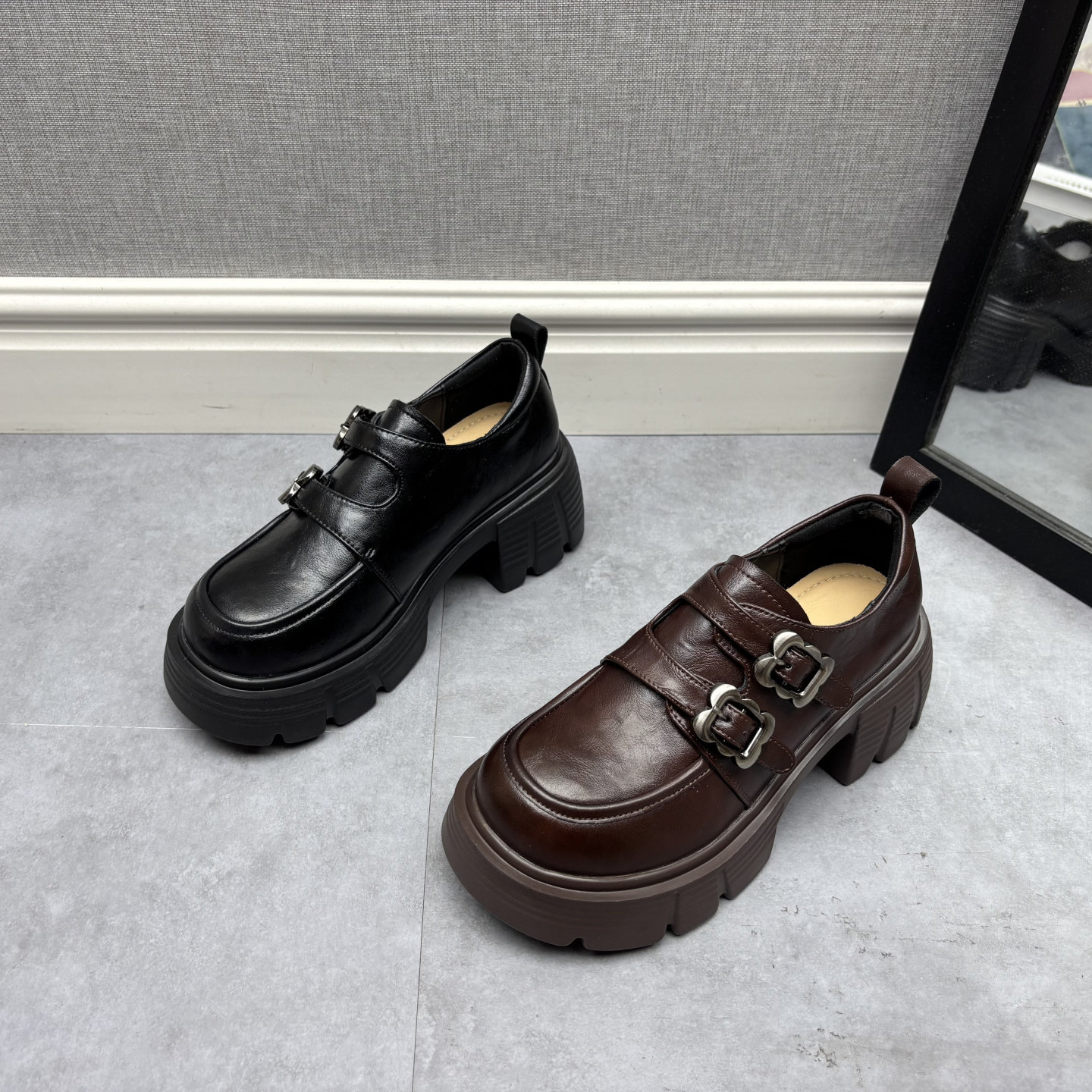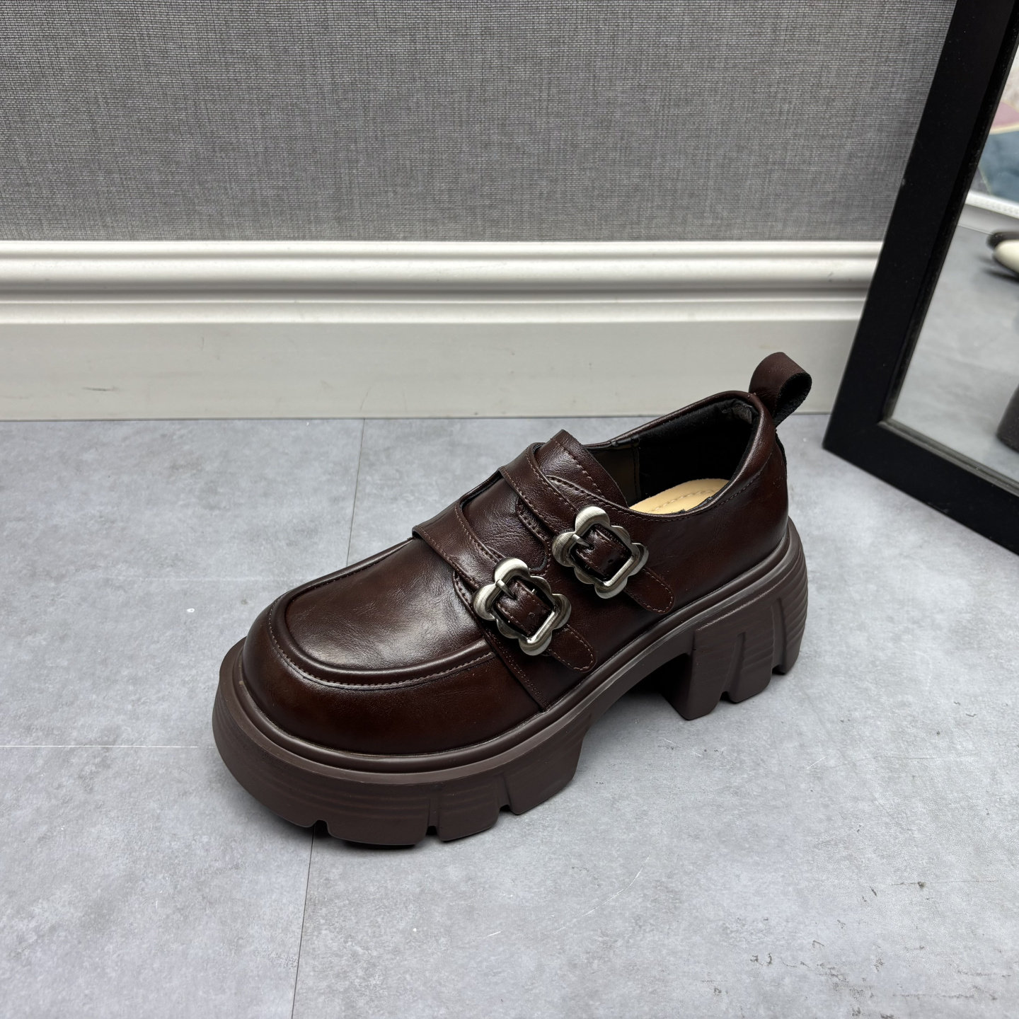 品牌撤柜2025秋季新款断码处理真皮女鞋复古风圆头搭扣松糕底皮鞋