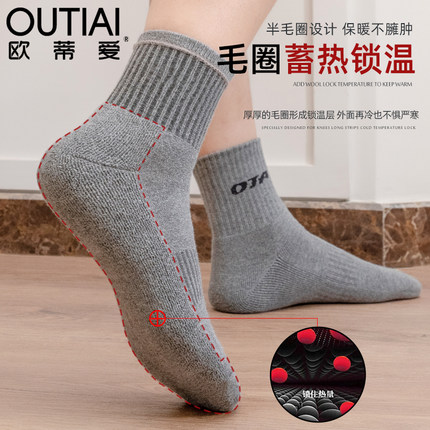欧蒂爱厚袜子男冬季加绒加厚毛巾底女袜保暖超厚棉袜中筒防臭长袜