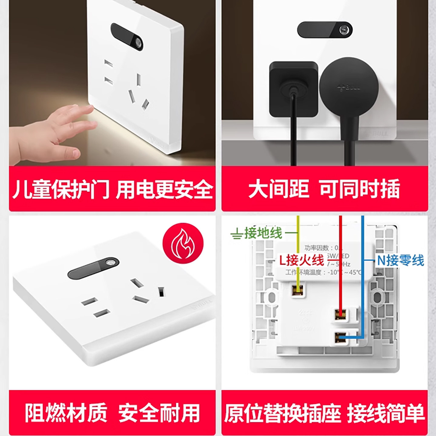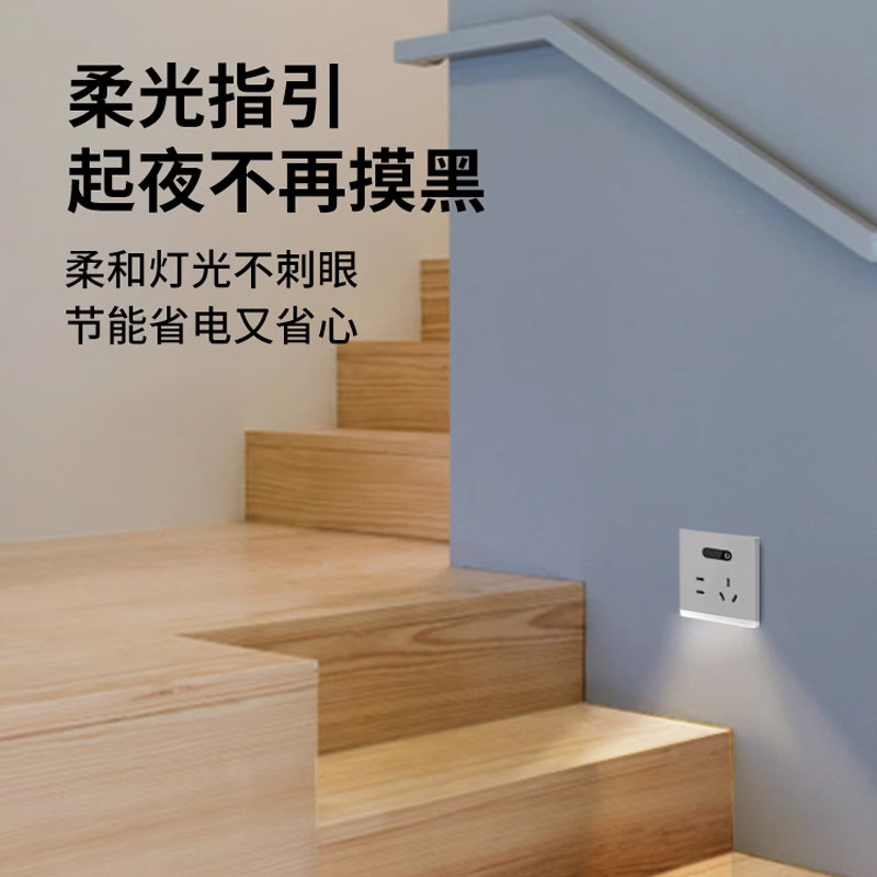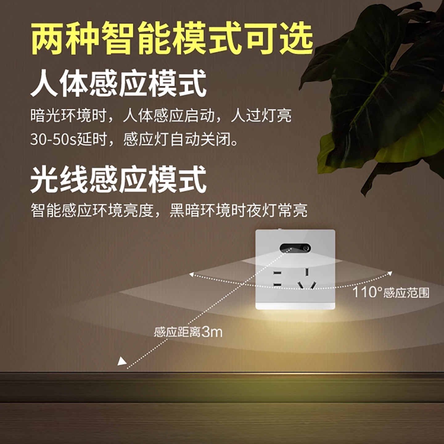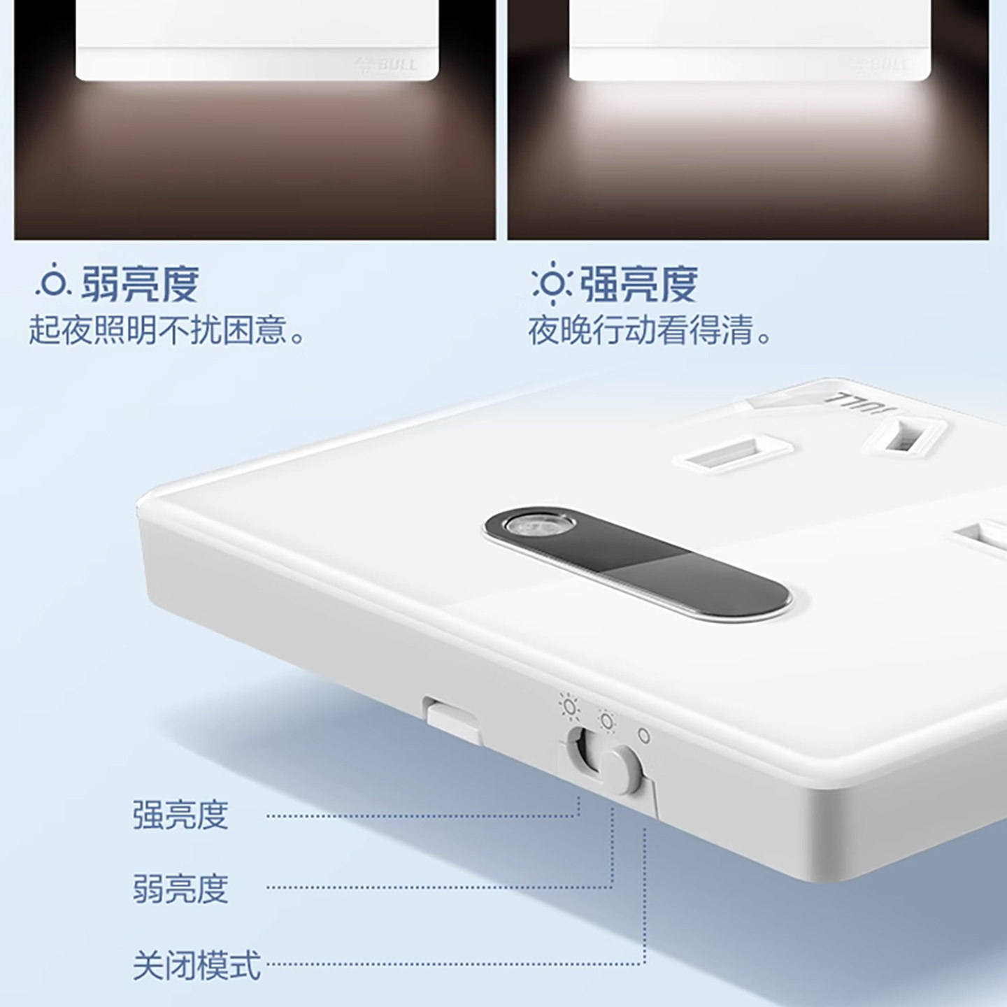 公牛人体感应地脚灯五孔小夜灯插座面板带灯楼梯红外智能光控开关