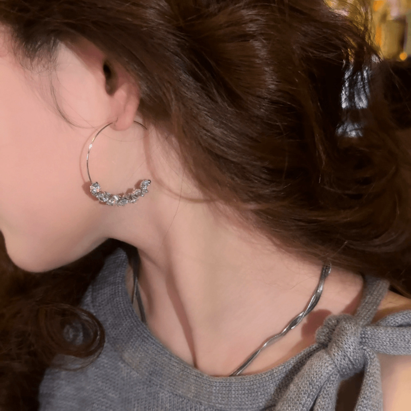 简约闪钻圆圈耳环女2025新款爆款小众设计感圈圈耳圈耳饰气质耳钉