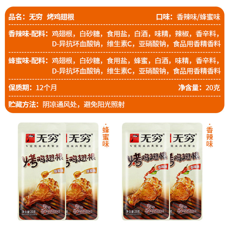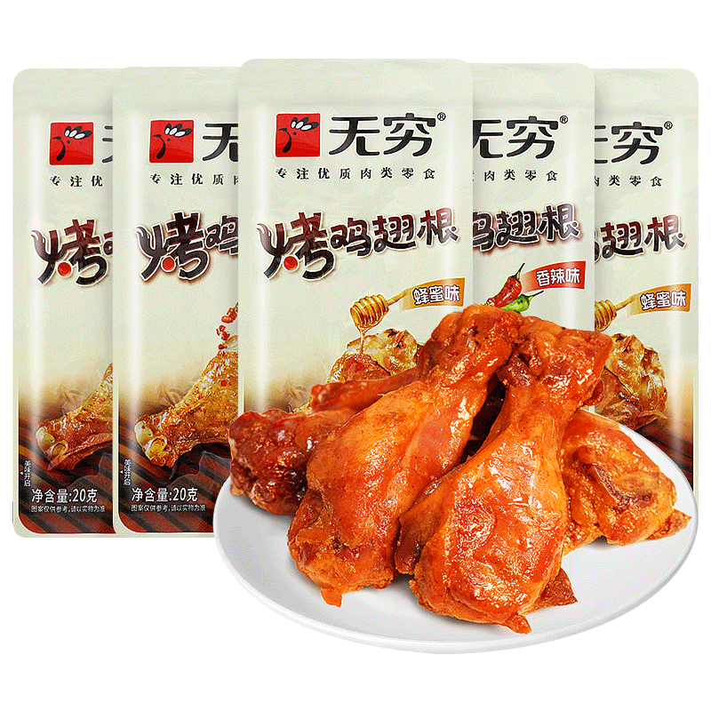 无穷烤鸡翅根小鸡腿蜂蜜味即食夜宵充饥追剧解馋小零食休闲小吃