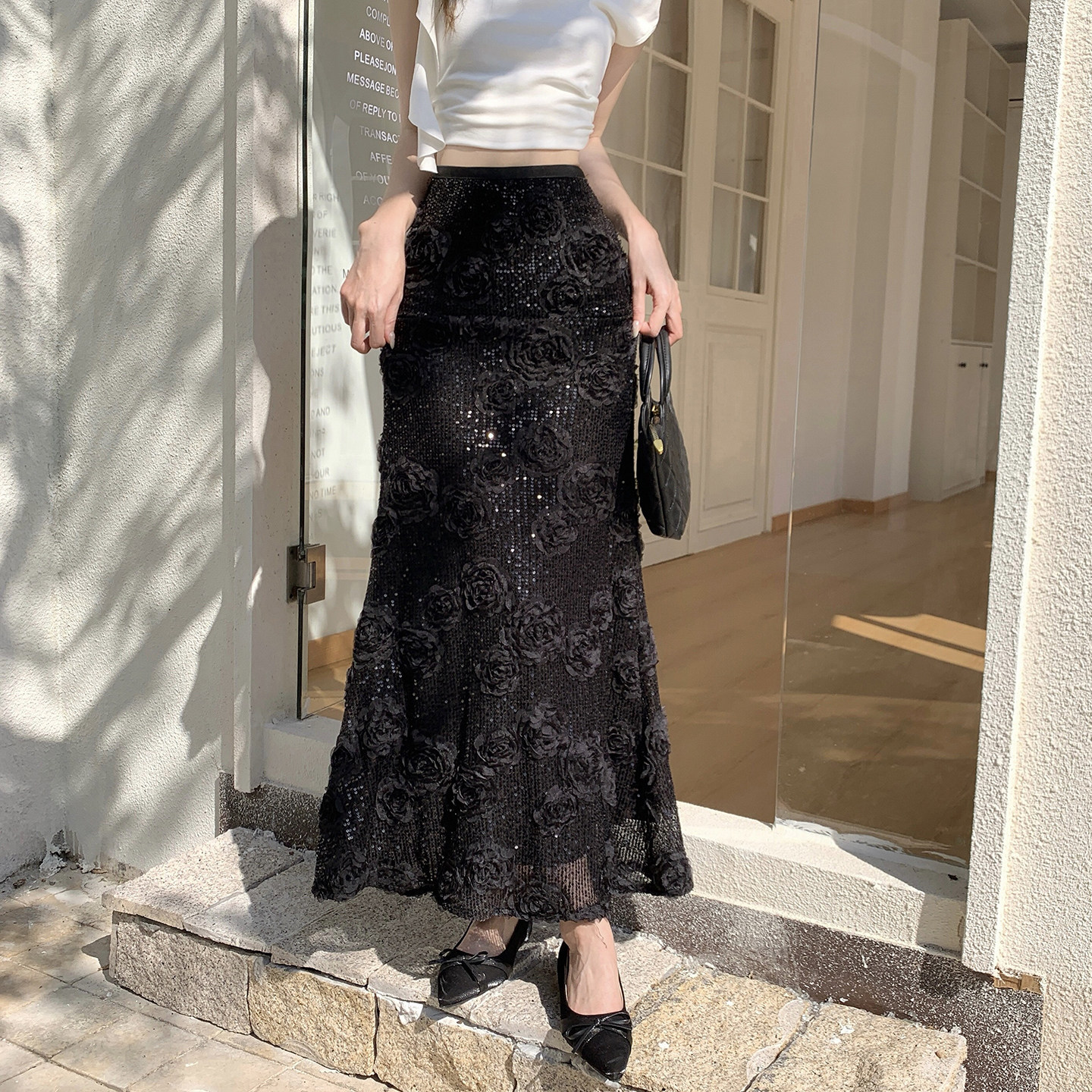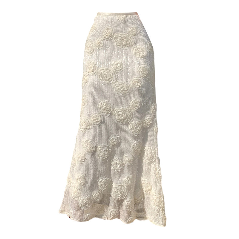 2026春夏新款小香风立体花裙子浪漫法式花朵长裙一步裙亮片鱼尾裙