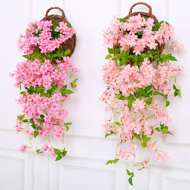 仿真迎春花壁挂假花装饰室内客厅墙面垂吊花藤蔓藤条挂墙吊篮挂壁