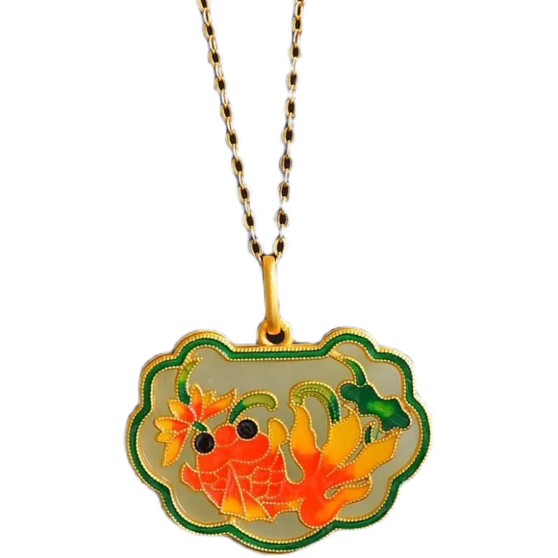 锦鲤荷花长命锁平安锁吊坠珐琅中国风古法金烧蓝如意锁宫廷风饰品