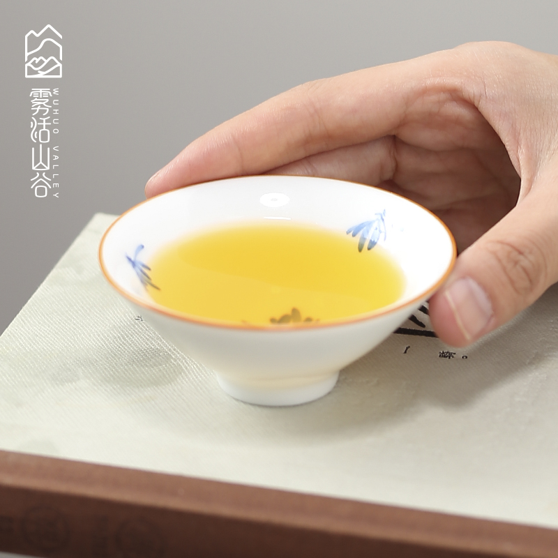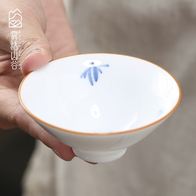 手绘白瓷斗笠杯釉下彩青花落兰中式主人杯功夫茶杯个人品茗杯礼盒