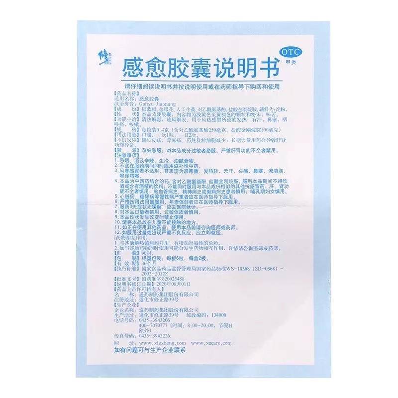 修正 感愈胶囊 12粒/盒 风热感冒所致发热有汗鼻塞咽喉痛咳嗽cc