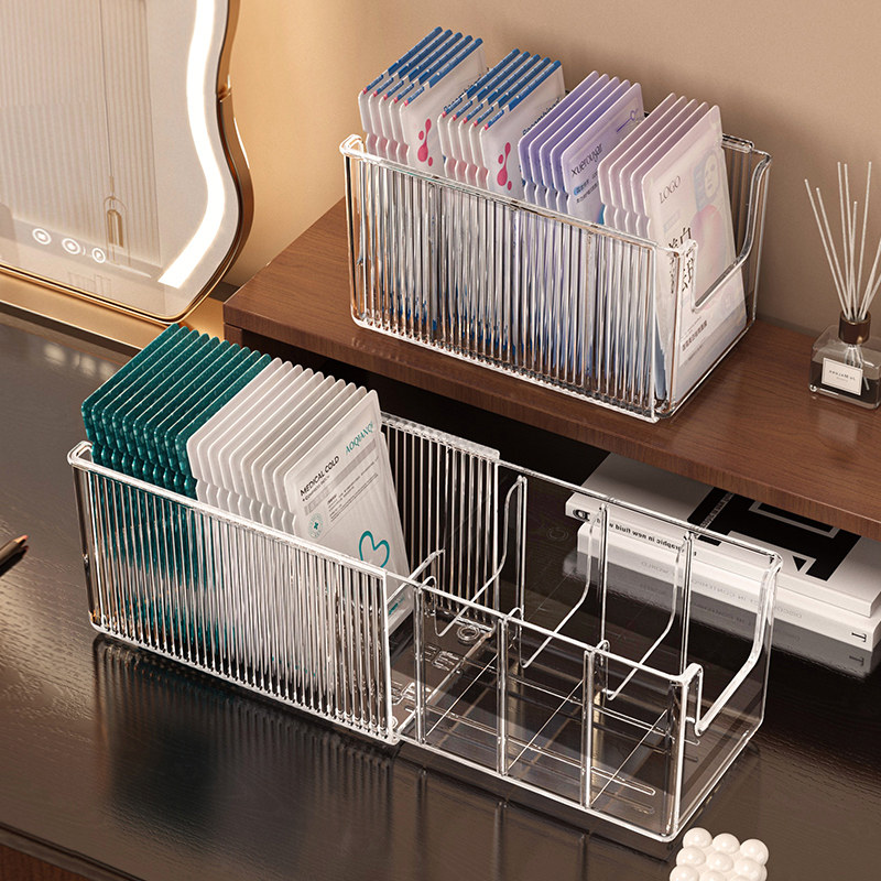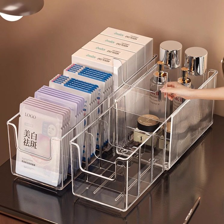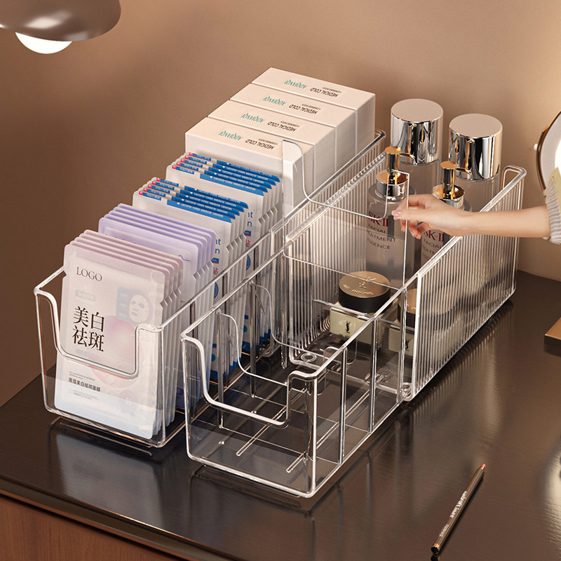 面膜收纳盒可伸缩透明亚克力护肤品整理筐大容量桌面化妆品置物架